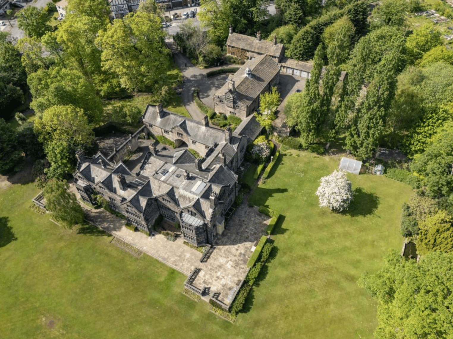 Nestled within approx. 10.1 acres, the Carr Manor Estate is a rare and remarkable private domain centred around an imposing Grade II Listed residence dating back to 1881.