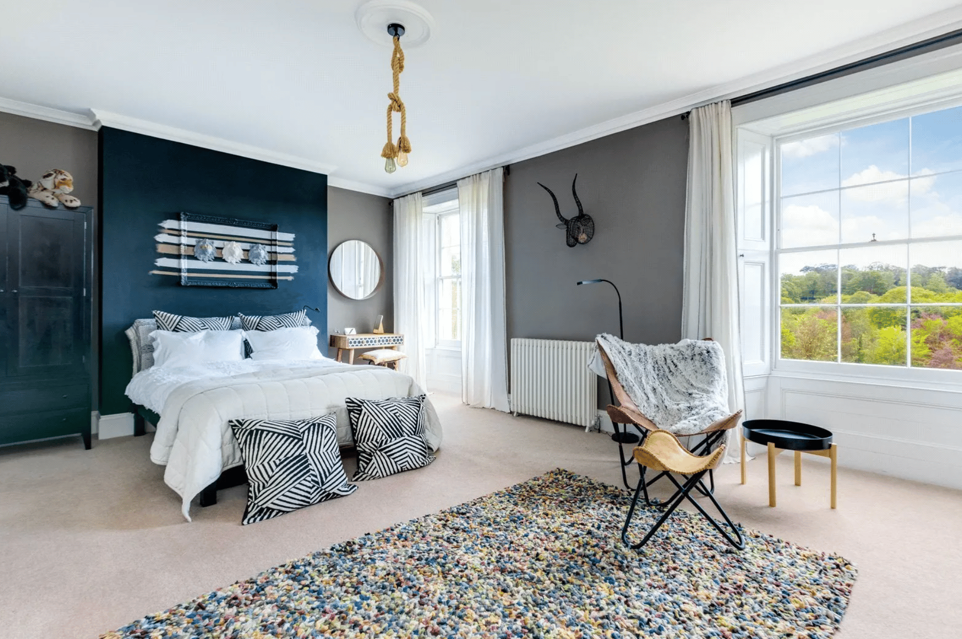 Inside, the house offers over 10,000 square feet of beautifully proportioned accommodation, where classic period features meet relaxed, contemporary comfort. A long central hallway sets the tone, leading to a series of elegant reception rooms, each with its own character, from the grand drawing room with its bay window overlooking the gardens, to the more intimate snug and study spaces.