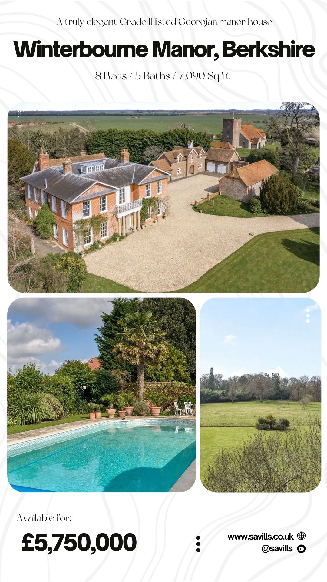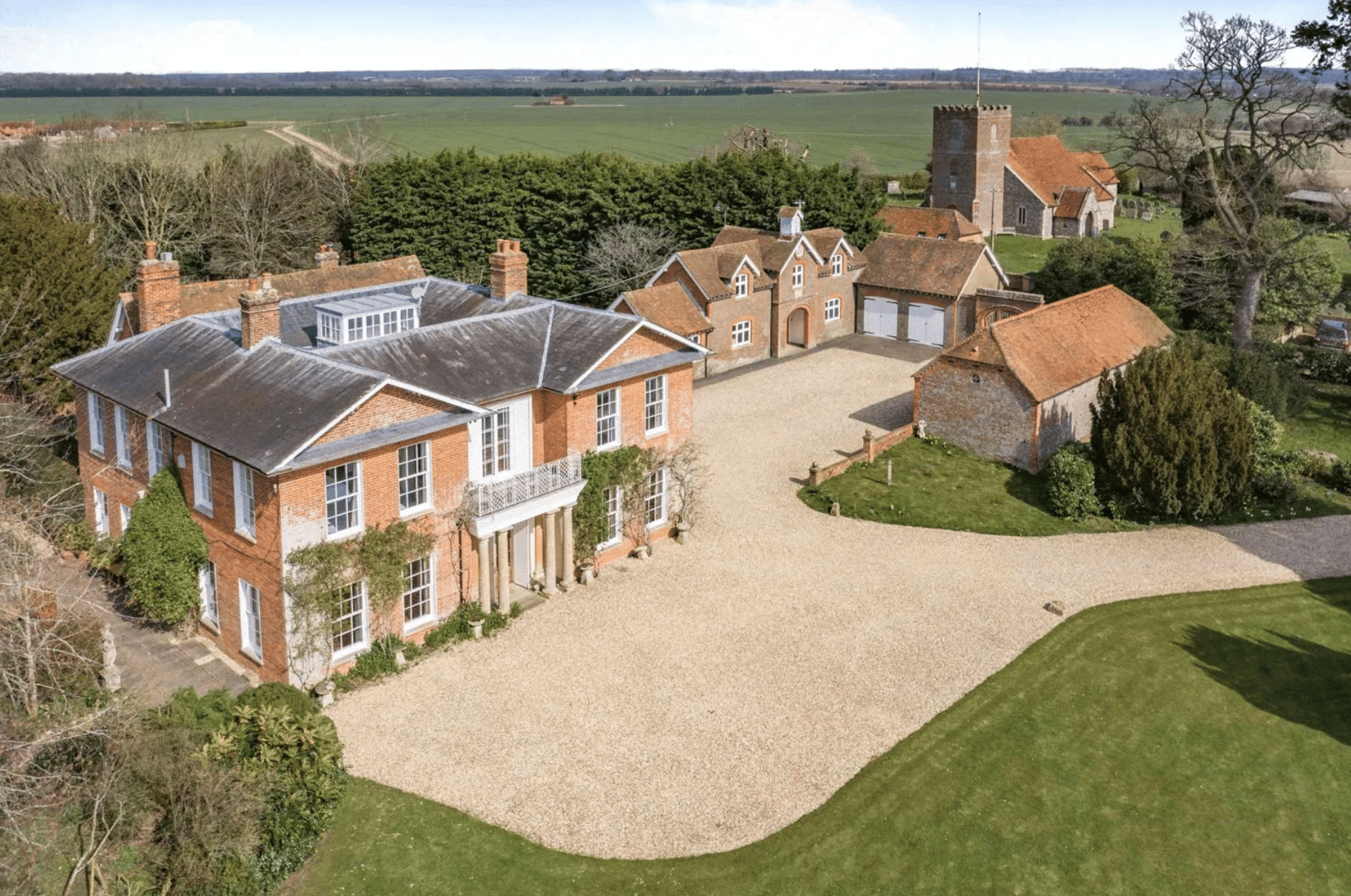£5.75M Georgian Manor with 32 Acres, Pool & Thatched Party Barn
