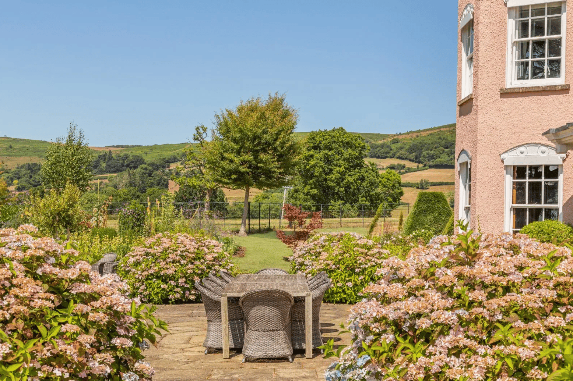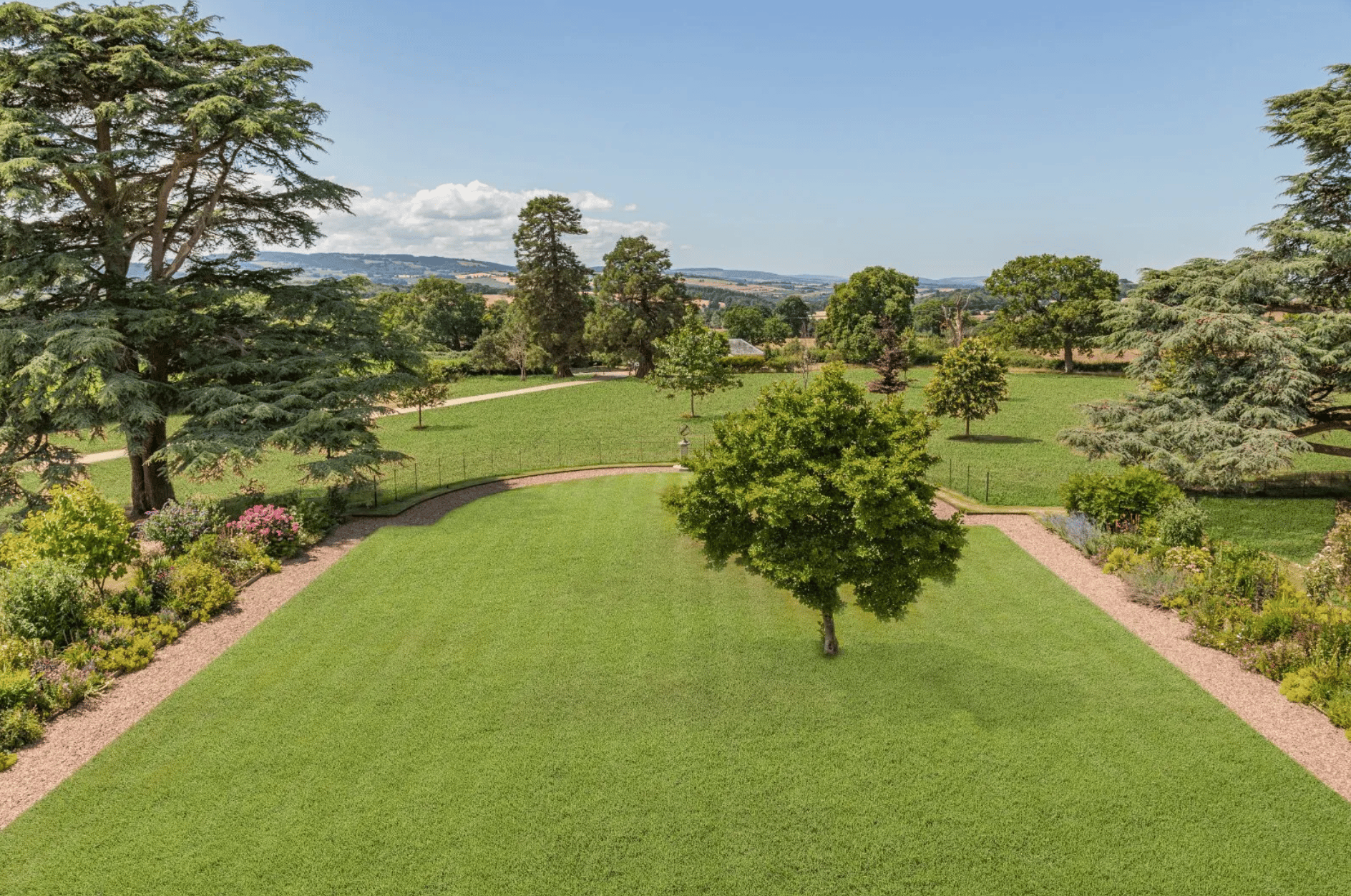 Surrounded by approximately 19.8 acres of parkland, the estate enjoys uninterrupted views across the Quantock Hills, Brendon Hills and beyond. Rolling lawns, mature trees and open countryside create a peaceful and private environment, perfectly complementing the scale and grandeur of the house.
