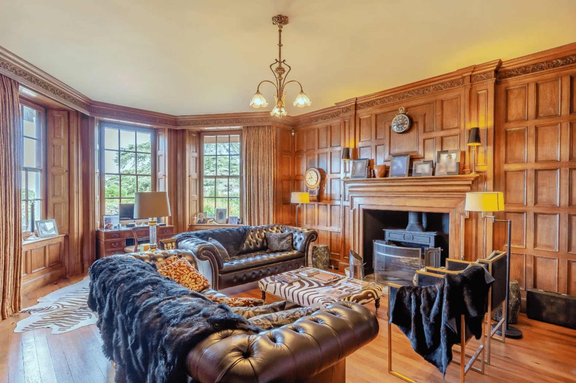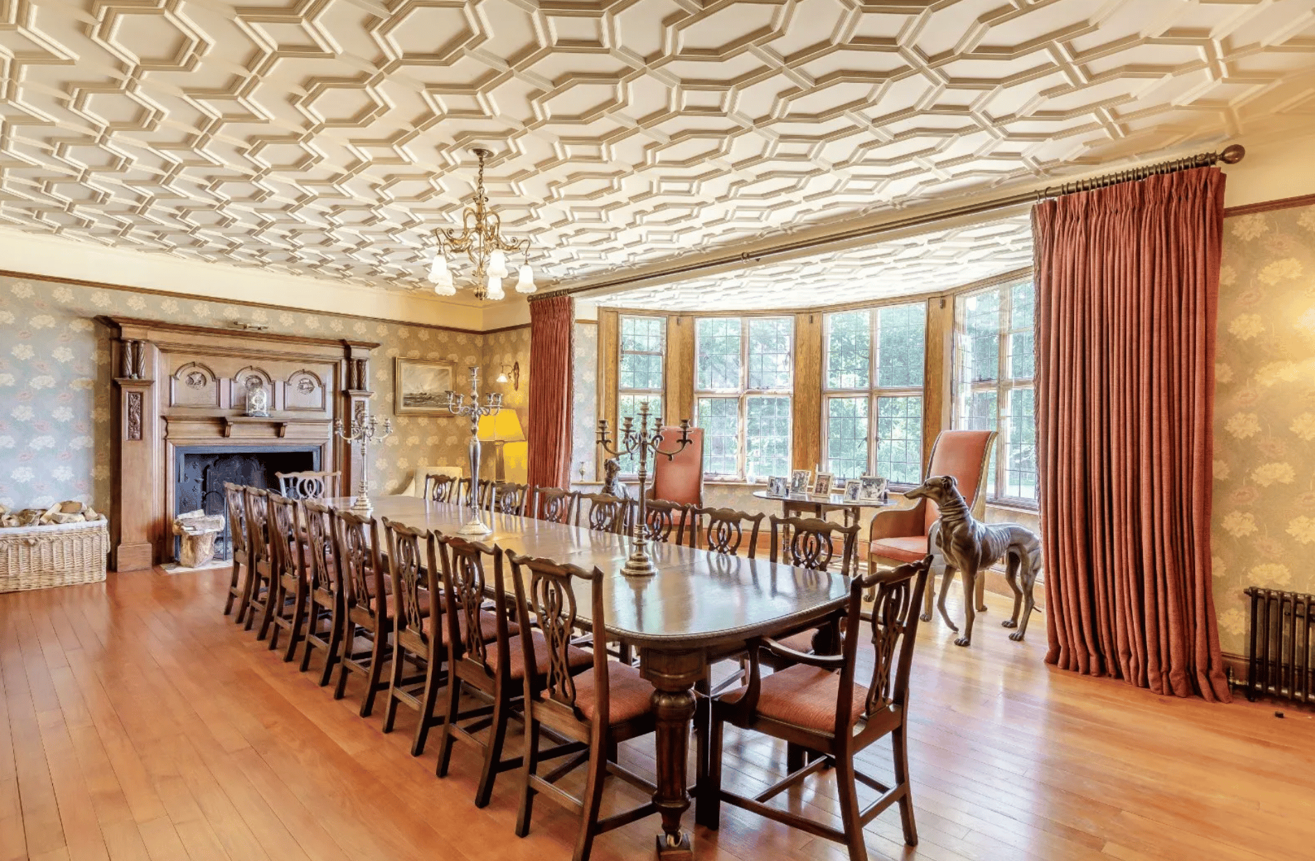 From the moment you enter the panelled entrance hall, the sense of scale and elegance is unmistakable. A sweeping staircase rises to a galleried landing, while the principal reception rooms, including a drawing room, music room and panelled library showcase intricate plasterwork, period fireplaces and stunning countryside views.