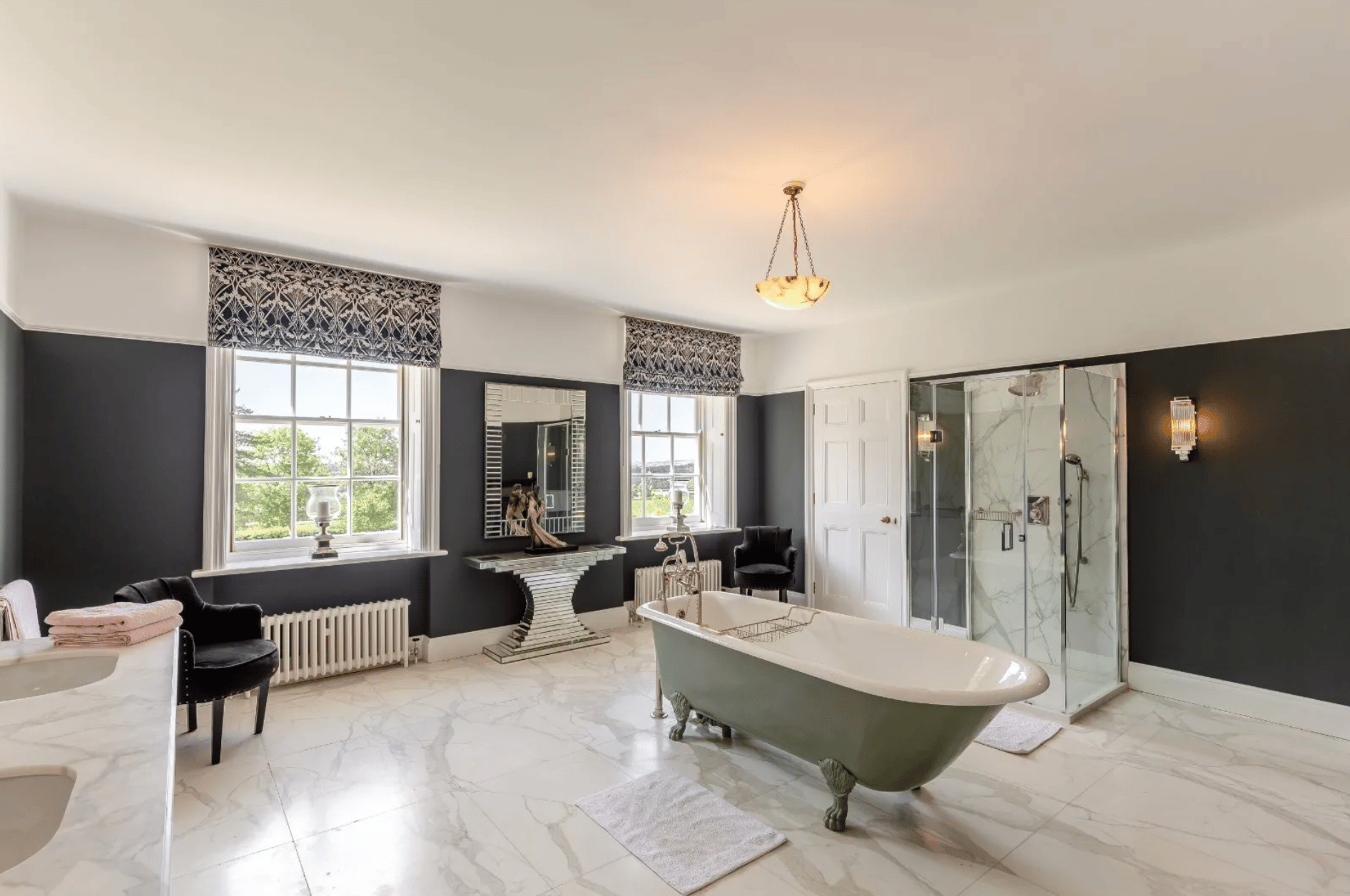 The bespoke Chalon kitchen offers both beauty and functionality, while upstairs the accommodation is equally impressive. The principal suite is a private sanctuary, complete with multiple dressing rooms and a luxurious marble bathroom