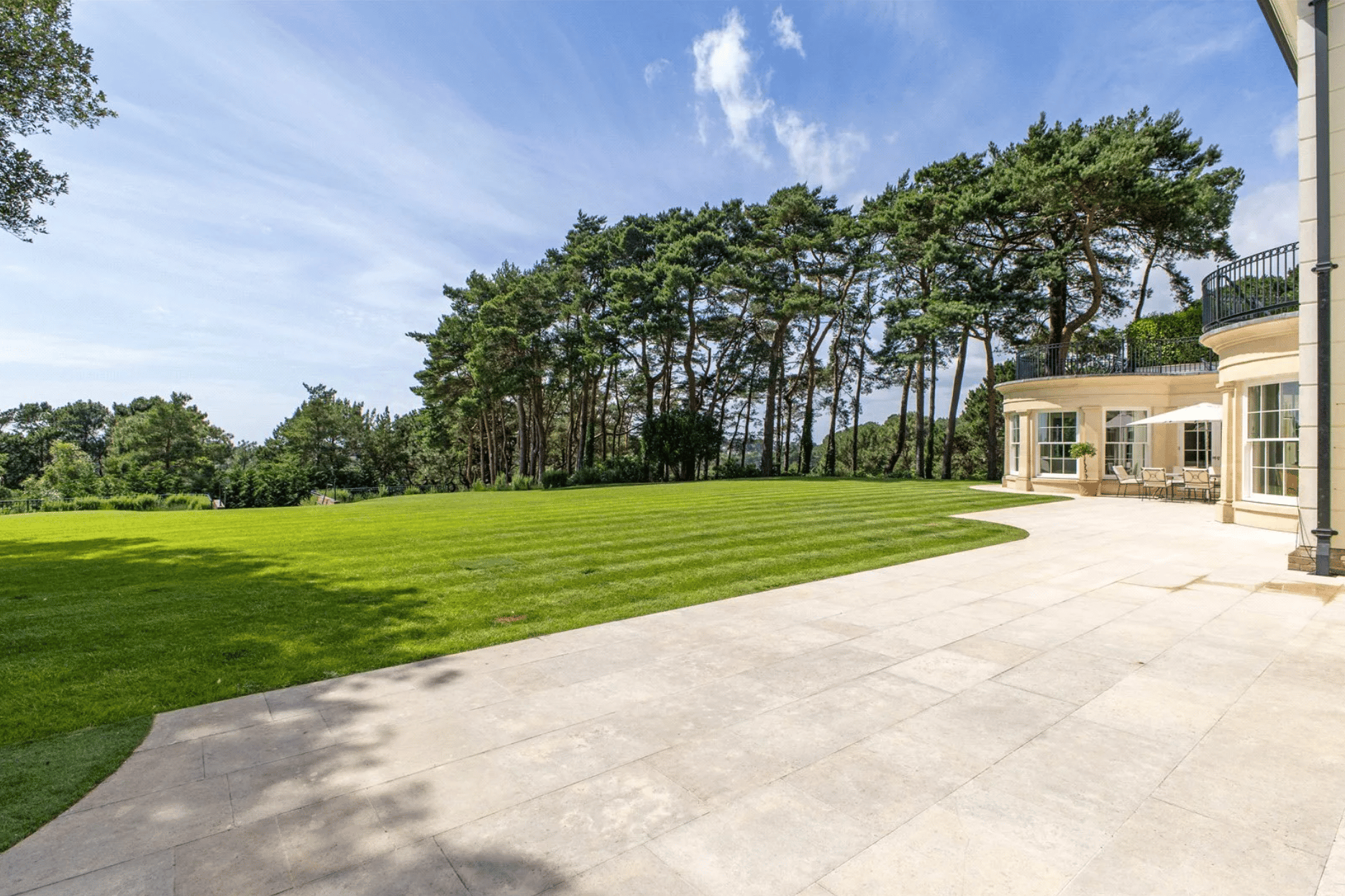 Set within walled, meticulously landscaped gardens, Mulberry House enjoys sweeping lawns, mature pine trees, formal planting and a wraparound Bath stone terrace with inset lighting. Backing directly onto Parkstone Golf Course and enjoying distant water views towards Sandbanks, the setting is both serene and unmistakably prestigious.