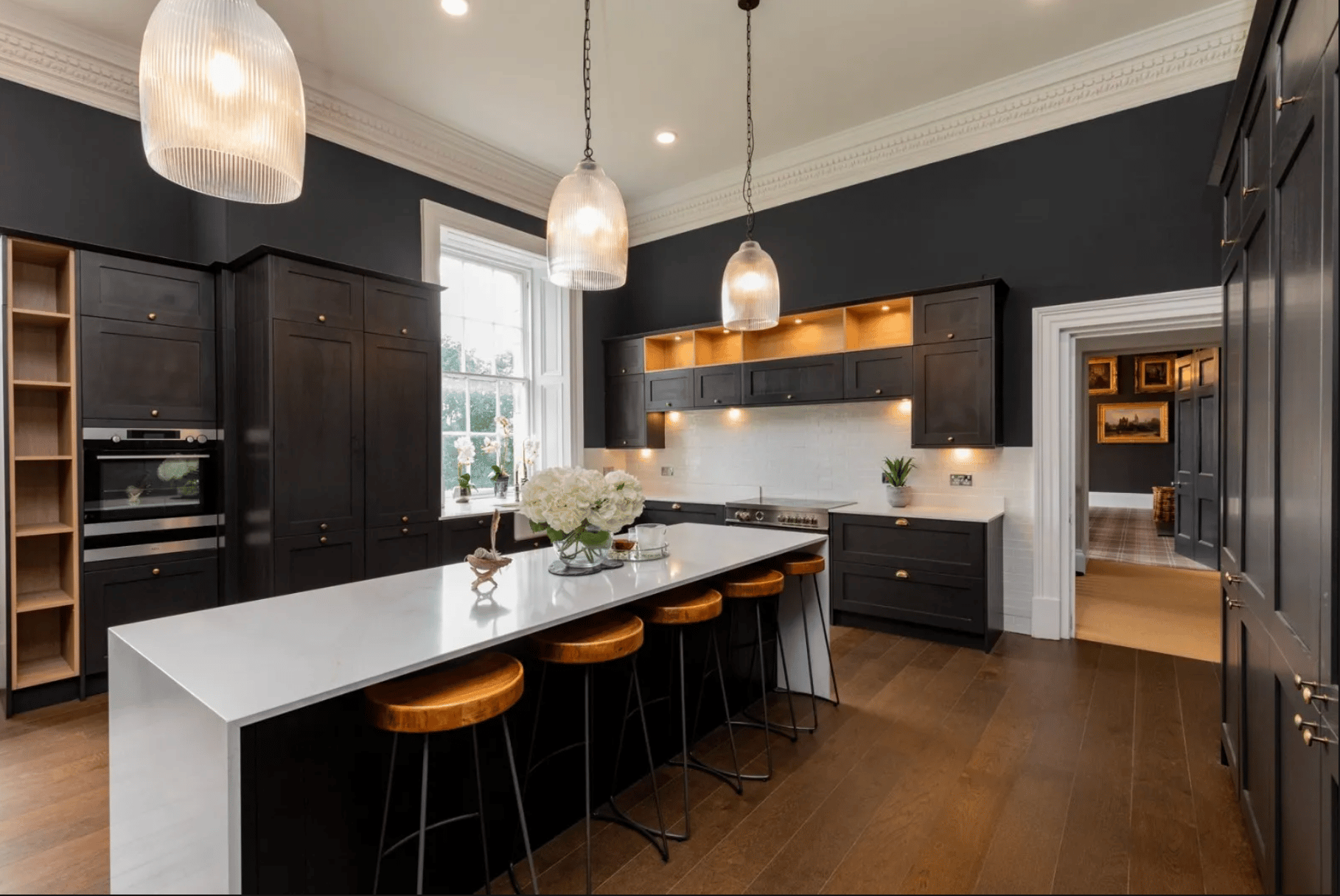 A magnificent drawing room with soaring ceilings and original cornicing sets the tone, while the elegant dining room delivers Highland character and warmth. A handcrafted library with a marble topped bar creates an indulgent retreat, while the contemporary kitchen balances period architecture with modern performance.
