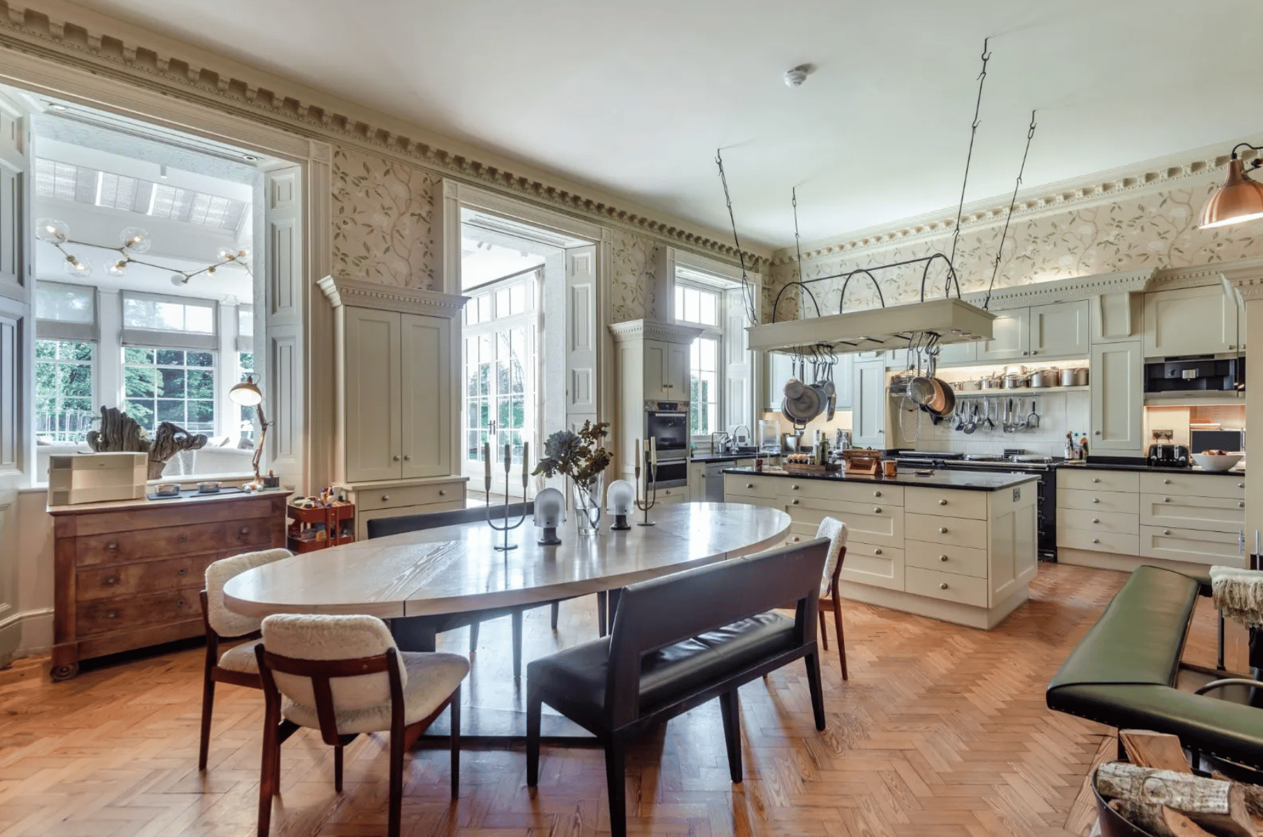 Leisure and wellness are seamlessly integrated, with a private cinema room and a fully equipped gym opening directly onto the gardens via bi-fold doors. The bespoke kitchen and breakfast room, anchored by a traditional Aga and generous central island, forms the heart of the house.