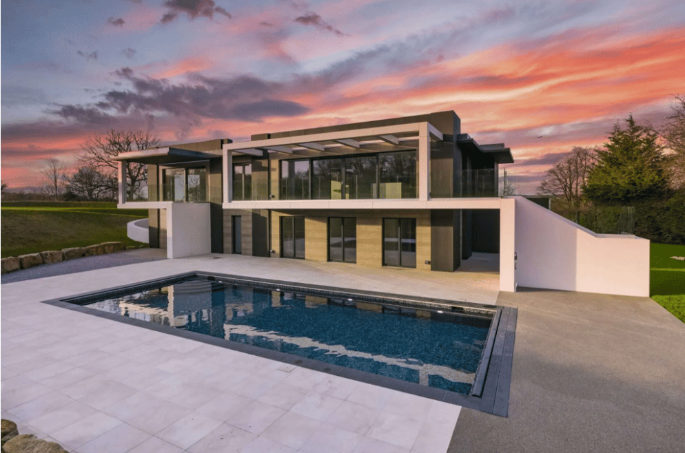 A contemporary designed luxury eco-home nestled within two acres of the English countryside in Surrey.