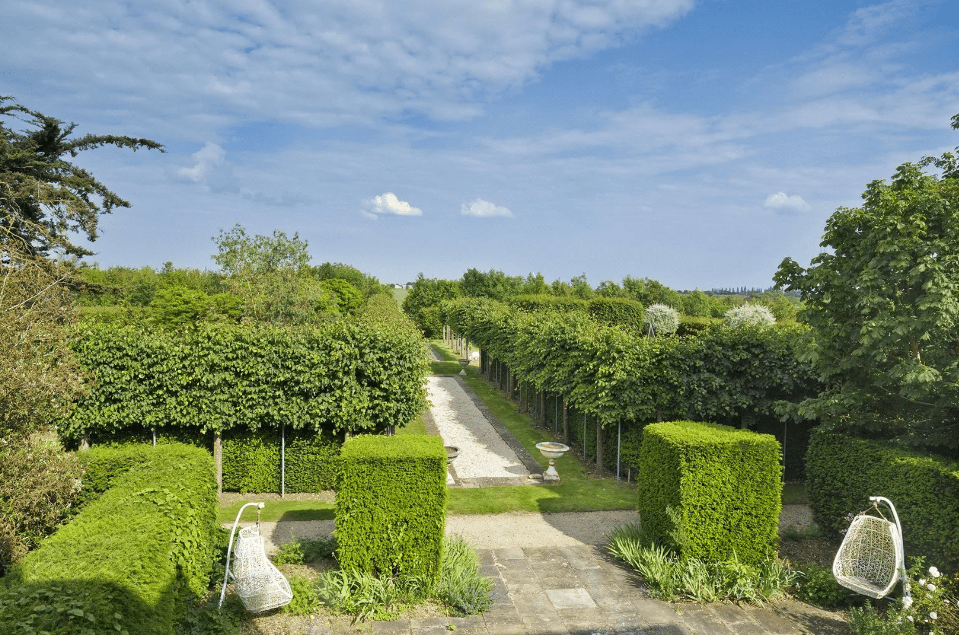 Sweeping lawns lead down to a ha-ha, beyond which the land opens into woodland and grazing fields with uninterrupted views towards the River Crouch. A pond and ornamental gardens provide peaceful outdoor spaces, while the extensive south facing terrace is perfectly positioned for entertaining and enjoying the scenery.