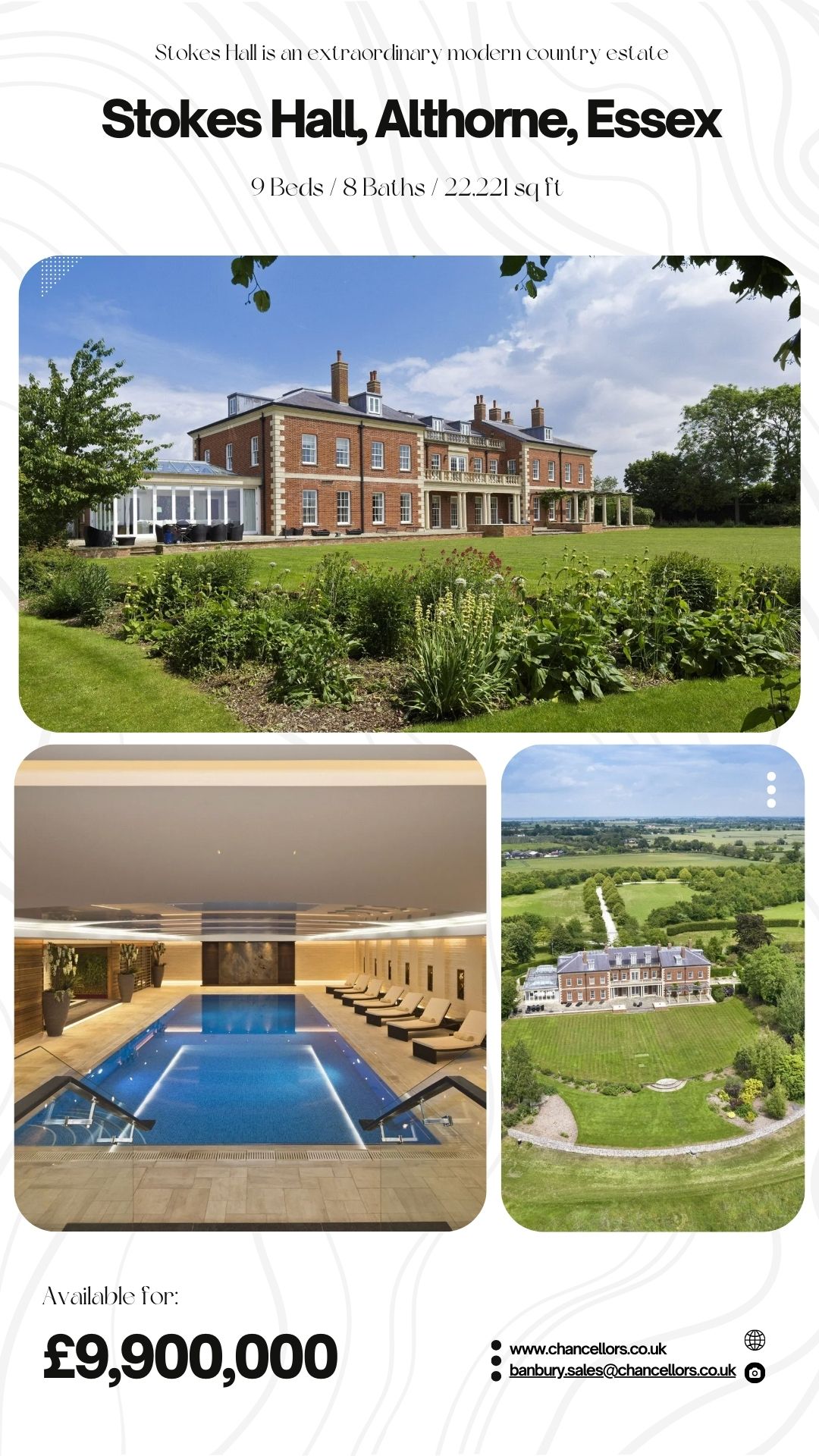 Stokes Hall is a truly outstanding English country estate. With its remarkable scale, luxurious leisure facilities and 43 acres of land, it represents one of the most impressive private estates currently available in Essex.
