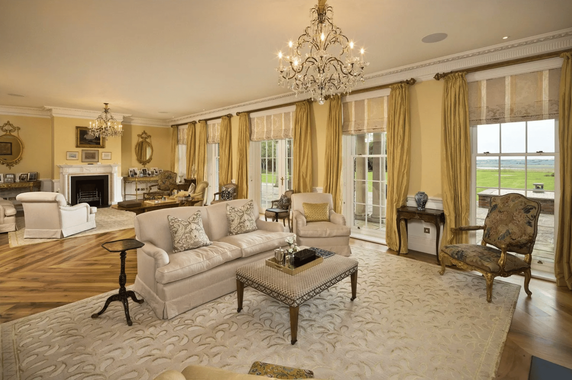 The principal reception rooms are beautifully proportioned and positioned to maximise the far reaching views. A grand drawing room with Chesney fireplaces opens onto the terrace, while the elegant dining room and spacious sitting room provide exceptional entertaining spaces.